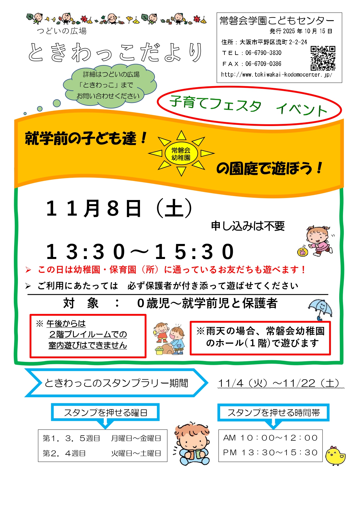 子育てフェスタイベント 「就学前の子ども達!常磐会幼稚園の園庭で遊ぼう!」